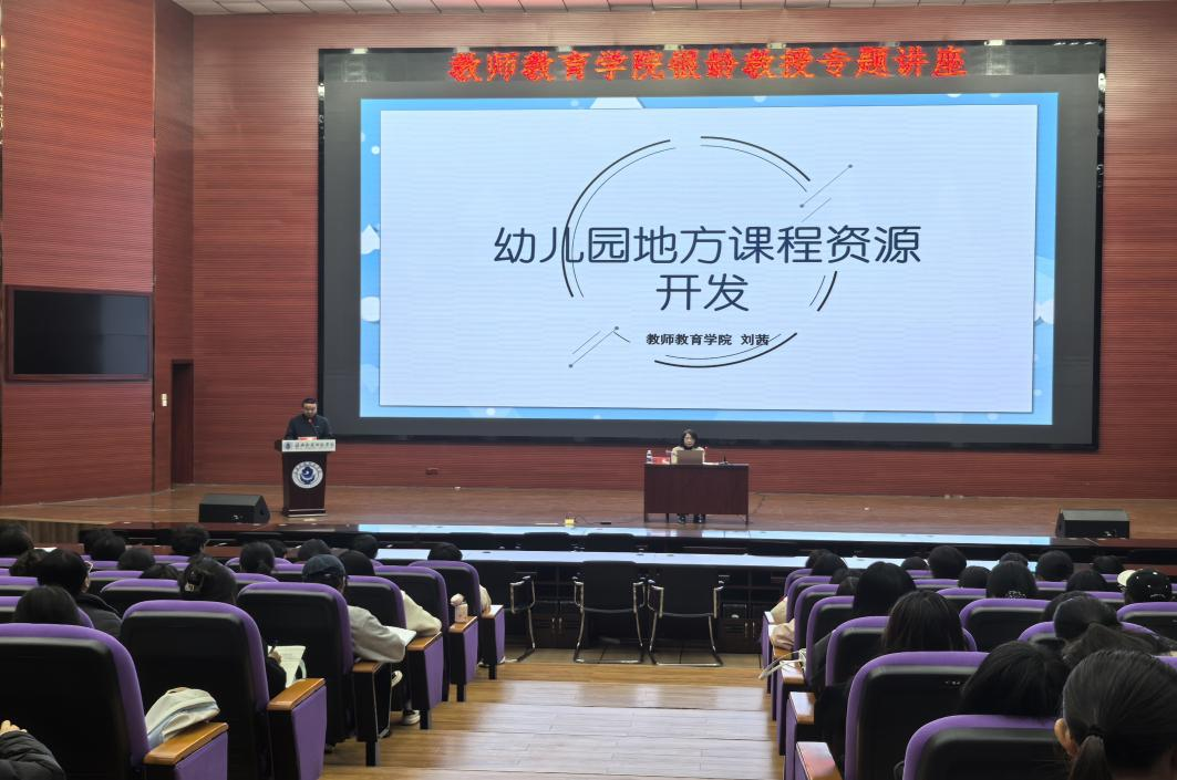 12月8日,教师教育学院(心理健康教育教学部)银龄教授刘茜开展“幼儿园地方课程资源开发”专题讲座,2025级学前教育专业全体学生参加。