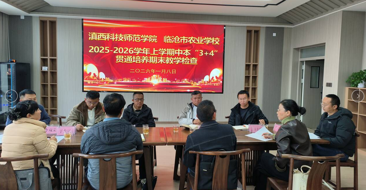 1月8日,为扎实推进“3+4”中本贯通培养项目高质量实施,促进中职与本科阶段人才培养有机衔接,我校教务处、职业教育学院(继续教育学院)、生物技术与工程学院联合组成期末教学检查小组,深入临沧市农业学校开展2025-2026学年上学期“3+4”贯通培养期末教学检查工作。