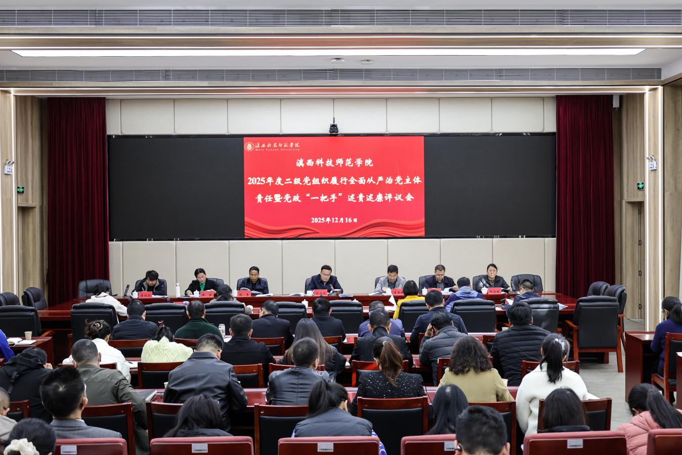 12月16日,学校召开2025年度二级党组织履行全面从严治党主体责任暨党政“一把手”述责述廉评议会,校党委书记阮凤斌主持会议并讲话。