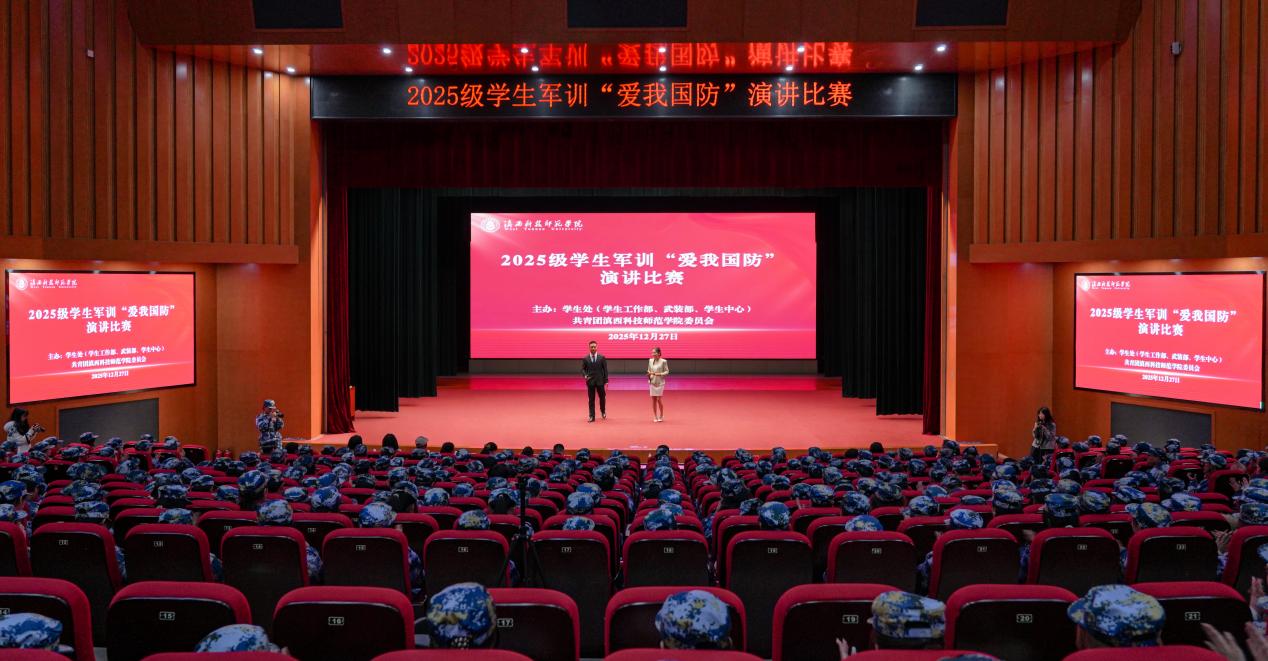12月27日,学校开展2025级学生军训“爱我国防”演讲比赛。作为学校军训期间国防教育的重要实践环节,本次比赛以声传情、以言铸魂,为初入校园的新生们上了一堂生动深刻的爱国主义教育课。